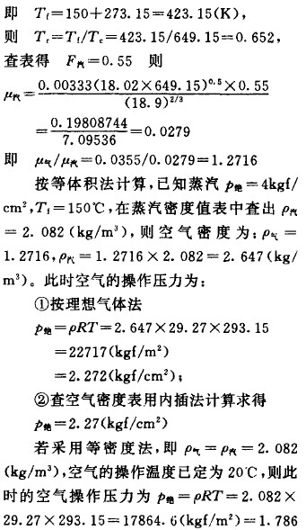 (kgf/cm2)。在此(cǐ)操作狀态(tai)下,由于qm=Vρ, ρ值(zhi)不變,欲想(xiǎng)達到ReD氣=ReD汽(qì),且qm氣/qm汽=1.2716條(tiáo)件,v值🌈體積(ji)量應增大(da)爲原來量(liang)的1.2716倍。