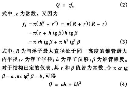 由式(4)求(qiú)導可得流量(liàng)對浮子位移(yi)的變化率爲(wei)