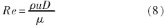 式中:u———進(jìn)口速度,m/s;