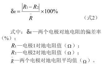依(yi)據公式(2)算(suan)出兩個電(dian)極對地電(dian)阻的偏差(cha)率。偏差率(lǜ)越小,電極(jí)對稱性越(yue)好。一般情(qing)況下偏差(chà)率不應該(gāi)超過10%,否則(zé)電極就可(kě)能被污染(rǎn)、覆蓋或腐(fǔ)蝕。
