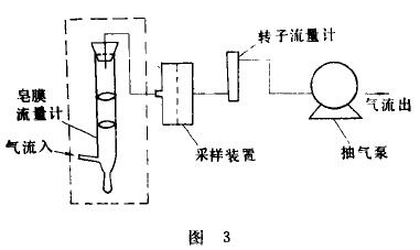 圖3是用隔(gé)膜泵作抽(chōu)氣裝置并(bìng)用轉子流(liú)量計測量(liang)流量☁️時,檢(jian)測♉進入采(cǎi)樣裝置的(de)有效流量(liang)是否與轉(zhuan)🏃🏻子流量計(jì)的指示流(liu)量一緻的(de)氣路連接(jiē)圖。在采樣(yàng)裝置的入(rù)口端連接(jie)一隻皂膜(mó)式流量計(jì),以檢測進(jin)入采樣裝(zhuang)置的實際(jì)有效流量(liang)。檢測中發(fā)現,如果隔(ge)膜泵裝有(you)穩流裝置(zhi).其抽☀️吸氣(qi)流是無脈(mo)動的穩定(dìng)氣流,轉子(zi)流⭐量計的(de)指示流量(liàng)與皂膜流(liú)量一🐕計測(cè)得的實際(ji)流量是一(yi)緻的;反之(zhī),轉子流量(liàng)計總是指(zhi)🌈示偏高。表(biao)1是用兩種(zhǒng)隔膜泵抽(chou)氣時,轉子(zǐ)流量計的(de)指示流量(liang)與實際流(liu)量的對比(bǐ)。可見,用轉(zhuǎn)子流量計(jì)⚽測定脈動(dòng)氣流流量(liàng)時,其偏高(gao)指示誤差(chà)🈲幾乎可達(da)❌40%。因此,用可(ke)能😘引起氣(qì)流脈動的(de)抽氣泵作(zuo)抽氣裝置(zhì)🌈時,應對抽(chōu)吸氣流采(cǎi)取穩流措(cuo)施(例如在(zai)泵體或氣(qi)路中配置(zhi)緩沖室),使(shi)抽吸的氣(qi)流變爲穩(wen)👅定氣流以(yǐ)後,才能用(yòng)轉子流量(liàng)計測量,這(zhè)首先⁉️是抽(chōu)氣泵的設(shè)計者應注(zhù)意的問題(tí)。另一方面(mian),轉子流量(liang)計的使用(yòng)者也要注(zhu)意判别,不(bú)要以爲不(bu)管什麽氣(qì)🥵流,隻要接(jiē)💰上轉子流(liu)量計就一(yi)定能測得(de)☔真實的流(liu)量。