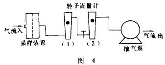 如(ru)圖1所示,要(yào)測定氣路(lu)中流經某(mǒu)一裝置(比(bi)如粉塵采(cai)樣器)的空(kōng)氣流量大(da)小,可在該(gai)裝置與抽(chou)氣泵之間(jiān)串接一隻(zhi)轉子流量(liàng)計。爲了控(kòng)制和調節(jiē)流量,同時(shi)還在氣路(lù)中串接一(yi)隻流量♌調(diào)節閥門。抽(chou)氣泵抽吸(xī)的空氣(氣(qi)體)流量大(da)小由轉子(zi)流量計直(zhí)接🔴指示。