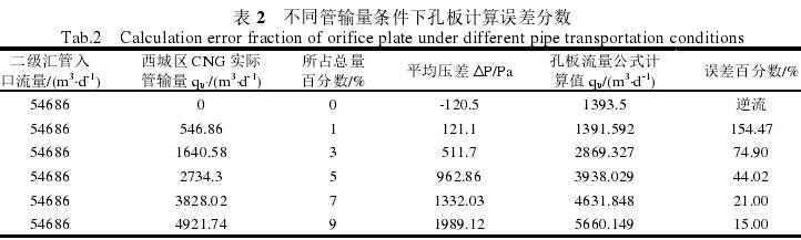 爲研究流量分配(pèi)對孔闆計量的影(yǐng)響,需要對回流發(fa)生時♍孔💁闆🔴内流場(chang)進行細緻深入的(de)分析,據二級彙管(guan)内脈動回流的分(fèn)析,當流量增至總(zong)流量的20%時,有漩渦(wō)存在,但已不影響(xiǎng)下遊孔闆計量。當(dāng)西城區CNG流量小于(yu)總流量的10%時,在當(dang)前壓力條件及彙(hui)管結構下必然産(chan)生回流現象🏃。而工(gong)作壓力對回流的(de)形💁成幾乎無影響(xiǎng),因此令二級彙管(guǎn)入口流量爲54686m3/d,分析(xi)🈲當西城區CNG管道流(liu)🍓量分别爲二級彙(hui)管入口總流量的(de)0%,1%,3%,5%,7%,9%工況下,回流對孔(kong)♍闆流量計計量的(de)⛱️影響分析。根據所(suǒ)計算結果及孔闆(pan)穩定流動時計算(suàn)得到的流出系數(shù)C,根據壓差ΔP及流出(chū)系數計算得到當(dang)西城區🎯CNG管道實際(ji)輸🐕量qυ’與孔闆計量(liang)輸量qυ的誤差關系(xi)如表2所示: