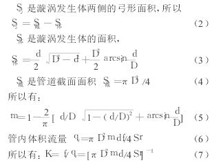 m———漩渦發(fa)生體兩(liǎng)側弓形(xing)面積與(yu)管道橫(héng)截