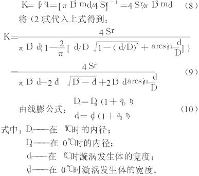 由(7)式可(kě)知,這是(shi)K在标準(zhǔn)狀況下(xia)的表達(da)式,在工(gōng)作條件(jiàn)下,由于(yú)溫度發(fa)生了變(biàn)化,由此(ci)引起K的(de)表達式(shi)的變化(huà)。