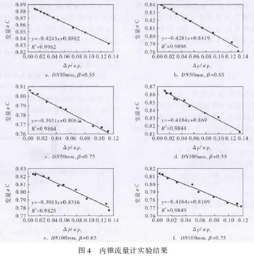 由式(shi)(5)可以發現,可膨脹(zhàng)系數ε與等效直徑(jìng)比β、壓力差Δp和上遊(you)側壓力p1相關。爲使(shǐ)研究具有普适性(xìng),選擇不同的β、Δp和p1進(jìn)行實驗,分析這3個(gè)參數對可膨脹系(xi)數的影響規💚律。具(jù)體方法是:β由流量(liàng)計本身的尺寸參(cān)數決定,在實🌐驗樣(yang)機加工過程中,采(cai)用可換錐的方式(shi)♋實現β的改變;Δp受介(jiè)質流速的影響,在(zài)實驗中通過改變(biàn)實驗流量實👣現Δp的(de)改變;p1的改變由蒸(zhēng)汽流量标準裝置(zhi)改變檢測工況條(tiáo)件實現。