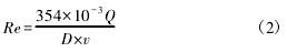 式(shi)中,Q爲體(ti)積流量(liàng),m3/h;D爲流量(liàng)計内徑(jìng),mm;v爲運動(dòng)粘度,m2/s。