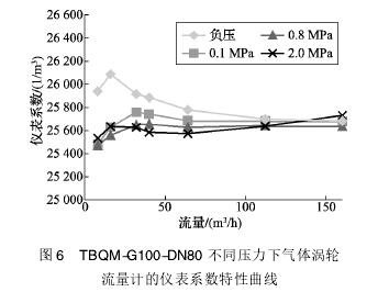 根據表1和表(biǎo)2繪制得到不同(tong)壓力下氣體渦(wō)輪流量☀️計的㊙️儀(yí)表🛀🏻系數特性,如(ru)圖5和圖6所示。