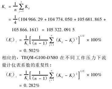 計算得出TBQM-G65-DN50在不(bú)同工作壓力下(xià)流量計儀表系(xì)數的重🏃🏻複🤟性: