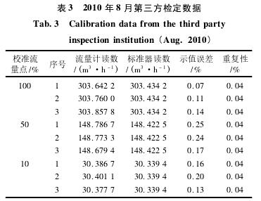 電磁流(liu)量計出廠時以(yi)及經過一年的(de)使用之後,再次(ci)對同一❌台♌電磁(ci)流量計進行在(zai)線檢定,數據記(ji)錄🛀🏻及處理結果(guo)如表 1、表 2 所示。其(qí)中,原始在線檢(jiǎn)定數據的環境(jing)溫度爲 29 ℃、相對濕(shi)🛀🏻度爲70% RH,最大示值(zhi)♌誤差爲0.25% ; 運行一(yī)年後檢定數據(ju)的環境溫度💁爲(wei) 30 ℃、相對濕度爲70% RH。經(jīng)第🈲三方檢測的(de)原始數據如表(biǎo)3 所示。