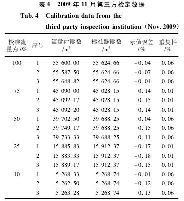 該熱力公司(sī)于每年 10 月初開(kāi)始對供暖設施(shi)進行加壓試運(yùn)行,檢查設備是(shì)否正常可靠。目(mu)前,大口徑的流(liú)量計在該企業(ye)的熱力供給線(xiàn)上運行,在 2010 年 10 月(yue)份試運行過程(chéng)中,發現其中一(yi)台DN 1 200 mm 的大口徑流(liú)量計出🧡現數據(jù)波動,提議需對(duì)該表運🌐行的精(jing)度進行檢測。使(shǐ)用兩台精度爲(wèi)± 0. 5% 、重複性爲± 0.15% 的便(bian)攜式超聲波流(liu)量計對該流量(liang)計進行現場檢(jiǎn)查。DN 1 200 mm 的大口徑流(liú)量㊙️計第✌️三方檢(jian)定數據如表 4 所(suo)示。由表 4 可以看(kàn)出,最大示值誤(wù)差爲 0. 18% ,最大重複(fu)性🈚爲 0. 06% 。