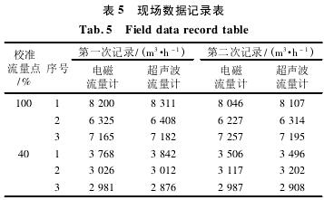 經分段檢定,超(chāo)聲波流量計數(shu)據記錄如表 5 所(suo)示。對比發現😄,超(chao)聲波流量計數(shù)據顯示及波動(dong)情況與電磁流(liú)量計所反映的(de)情況一緻。