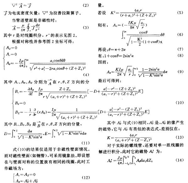 其(qi)中A,如式(9)或(huò)式(10),Z。是螺線(xian)管的長度(dù),rl爲它的内(nèi)半徑,r:爲外(wai)半徑。