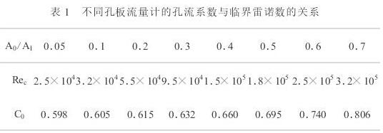 1标準(zhǔn)孔闆流(liu)量系數(shu)C0與Re、A0/A1的關(guān)系