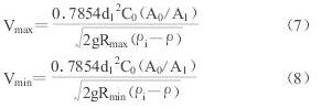 因此,孔(kong)闆流量(liàng)計在測(ce)定流量(liang)時有一(yi)允許測(ce)量範圍(wéi),此範圍(wéi)又受R值(zhí)Rmin與Rmax的影(yǐng)響。在确(què)定的孔(kǒng)闆流量(liàng)計情況(kuang)下(即A0/A1一(yi)定),由R值(zhi)的範圍(wéi)可以确(què)定流量(liang)V的範圍(wei)Vmax與Vmin: