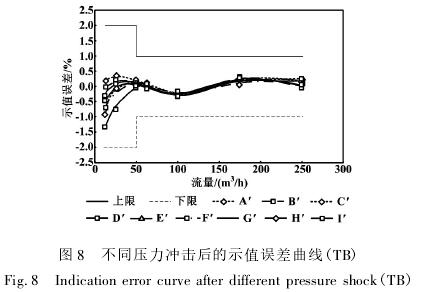 圖8不同壓(ya)力沖擊後(hou)的示值誤(wu)差曲線