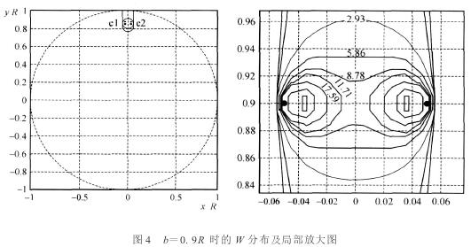 取b= 0.9R,θ= 0.0555rad,繪制(zhi)W分布如(ru)圖4所示(shi)。