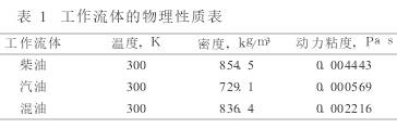 内(nei)錐流量(liàng)計的數(shù)值模拟(nǐ)實驗介(jiè)質爲柴(chái)油與汽(qì)油的混(hun)合物,其(qí)物理性(xìng)質見表(biǎo)1所示。