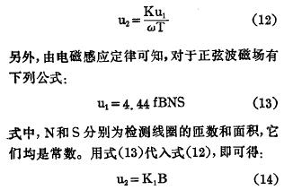 式中u 2爲積(jī)分電路的(de)輸出電壓(yā), u 1爲積分電(diàn)路的輸入(ru)電壓,即是(shì)檢測線圈(quān)上所取得(de)的感應電(diàn)壓,ω爲磁場(chǎng)角頻率, ω=2πf,f爲(wei)勵磁頻率(lü),K= R2/(R1+ R2),T爲時間常(chang)數,其表達(dá)式爲T= R1 R2C/( R1+ R2),設計(ji)時使ω2T2>>1,則式(shì)(11)可改寫