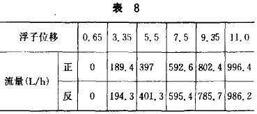 (3)平(ping)衡杆磁(cí)鋼端偏(pian)輕時的(de)流量位(wei)移值見(jiàn)表3。