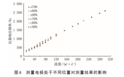 集(ji)流型内流式(shì)電磁流量計(jì)采用2個測量(liàng)電極的結🆚構(gou)☀️,2個測量電極(ji)與2個發射磁(ci)極在圓周上(shàng)相互垂直均(jun1)勻分布。實際(ji)測井時,測量(liang)電極和磁極(ji)的位置在周(zhou)向上是随機(ji)且無法控制(zhi)的。水平井中(zhong)油水兩相流(liú)動形态複雜(zá)[11],分别将測量(liang)電極在水平(píng)管流中以🧑🏾🤝🧑🏼縱(zòng)向排列和✨水(shuǐ)平排列位置(zhì)進行設置🈲,來(lái)确定測量🌍電(dian)極在水平管(guan)流中所處位(wèi)置對測量結(jie)果的影響🤩(圖(tú)6)。從圖6可以看(kàn)出🐅,在相同流(liu)量及含水率(lǜ)下,測量電極(jí)縱向排列(c)設(she)置與♌水平(s)設(shè)置測量得到(dao)的數據點基(ji)本重合,表明(míng)内流式電磁(ci)流量計測量(liang)結果不受測(cè)量電極在水(shuǐ)平管流中⛱️所(suǒ)處位置的影(ying)響。