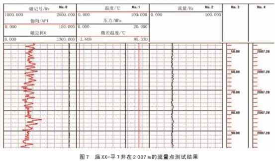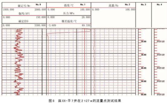 圖(tú)7、圖8分别爲該(gai)井在2087m、2127m深度處(chù)的流量點測(cè)試結果。從圖(tu)👈7、圖8可以看出(chū),在進行流量(liàng)測試過程中(zhong),儀器輸出🏃頻(pin)率波動較小(xiao)🏃🏻♂️,表明儀器工(gōng)作狀态較好(hao),并且井的産(chan)液量較穩定(ding)‼️。表1爲該井的(de)測井解釋🌈成(cheng)果。表1顯示在(zài)2110~2160層段,分層産(chǎn)液量爲21.2m3/d,占全(quán)井産液的49.7%,結(jié)合井溫測井(jǐng)資料可以㊙️确(que)定該層爲💁主(zhǔ)産液層。冀東(dong)油田采取了(le)ACP堵水作業後(hou)該井增油1m3/d,增(zēng)油效果明顯(xiǎn)。