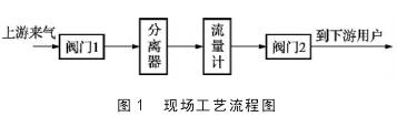 圖1所示(shi)爲DN80氣體渦(wo)輪流量計(ji)的現場工(gōng)藝流程圖(tu)。