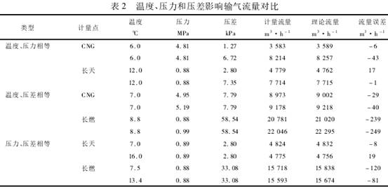 基(ji)于大嶺集(jí)輸氣站的(de)工作經驗(yan),結合輸氣(qi)計量的溫(wēn)度、壓力、壓(yā)差和流量(liang)數據進行(háng)研究。大嶺(lǐng)集輸氣站(zhàn)2010年建成并(bing)投産,設計(ji)輸氣能力(lì)每天254萬方(fāng),氣源來自(zì)八屋氣站(zhàn),2016年供氣用(yong)戶3個,其中(zhōng)高壓部分(fen)經分離器(qi)過濾直接(jiē)供給吉林(lin)銷售CNG大嶺(lǐng)站,另一部(bu)分經分離(lí)器過濾、水(shui)套爐和調(diào)壓撬調壓(yā)後供給長(zhang)燃和長天(tian),夏天最低(dī)日輸氣5萬(wàn)方,冬季最(zuì)高日輸氣(qi)88萬方,全✍️年(nián)外輸天然(ran)氣近🏒2億方(fang),承擔着分(fèn)公司近三(sān)分之一的(de)輸氣任務(wù)。下面以✨CNG、長(zhǎng)天和長燃(rán)供氣用戶(hù)(管道公🈲稱(chēng)直徑分别(bié)爲100、150、200mm)爲例進(jin)行說明✌️。 2.1不(bú)同孔闆結(jié)構對Kn的影(yǐng)響 選取CNG、長(zhang)天和長燃(rán)用戶用氣(qi)穩定時間(jian)段的輸氣(qì)數據進行(hang)分析,以天(tiān)然氣體積(ji)流量Qn爲縱(zong)坐标,溫壓(yā)梯🌈度變化(hua)參數3600′爲橫(héng)坐标,得出(chu)3個用戶計(ji)量設備的(de)Kn'存在差異(yi)(Kn'=Kn/3600),經拟合發(fa)現(圖2、表1),在(zài)不同條件(jian)下,CNG用戶Kn'值(zhi)誤差小于(yu)2%,長天用戶(hù)Kn'值誤差小(xiǎo)于3%,長燃用(yòng)♈戶Kn'值誤差(chà)小于5%,可以(yǐ)明确的是(shi)輸氣壓力(lì)越高流量(liang)波動越小(xiao),Kn'值誤差就(jiù)越小,Kn值誤(wù)差也就越(yue)小。但從誤(wù)差範圍看(kàn),一套标準(zhǔn)計量設備(bei)引起的計(ji)量誤差在(zai)允許範圍(wéi)内。因此,集(jí)輸氣站可(ke)通過計😘算(suan)不同管道(dao)孔闆😘計量(liàng)的Kn,簡化生(shēng)産過程中(zhong)的流量計(jì)算過程,從(cóng)而結合輸(shū)氣任務動(dong)态地做♉好(hao)計量操作(zuo),完成輸氣(qi)任務。 2.2溫度、壓(yā)力和壓差(chà)對輸氣計(ji)量的影響(xiang) 同一計量(liàng)設備常數(shù)Kn一定,對流(liu)量有影響(xiǎng)的有溫度(du)、壓力和壓(ya)差3個參數(shu)。表2列出了(le)同一用戶(hu)計量過程(chéng)中兩個參(cān)數相同另(ling)一個不同(tong)時的流量(liàng)變化,可以(yǐ)看出,當兩(liang)個參數相(xiàng)同時,溫度(dù)變化對流(liú)量的改變(biàn)是有限的(de),而壓力和(he)壓差的波(bo)動對流量(liàng)🧡的影響比(bi)🏃🏻較大。對于(yu)高壓外輸(shu)用戶CNG來說(shuo),進站壓力(li)受氣源供(gòng)氣與站内(nèi)輸氣的雙(shuāng)重影響,波(bo)動較大,但(dàn)它與壓差(chà)🚶共同影響(xiang)着流量,是(shi)高壓外輸(shū)用戶最主(zhu)要的兩個(ge)參數;而對(duì)于調壓外(wai)🤞輸用戶長(zhǎng)天和長燃(ran)來說,由于(yu)有調壓撬(qiào)進行壓力(li)調節,因此(ci)壓力波動(dòng)範圍顯著(zhe)😘變小,這樣(yàng)壓差就成(chéng)爲了反映(ying)流量的最(zui)主要參數(shu)。 3根據壓差(chà)選擇合适(shì)的量程 對(duì)集輸氣站(zhan)來說,除了(le)加強管理(li)和規範操(cāo)作外,結合(he)壓差選擇(ze)好孔闆的(de)量程成爲(wei)提高孔闆(pan)流量計計(jì)量精度的(de)關鍵。在輸(shu)氣過程中(zhong),用戶在不(bu)同時間段(duan)和不✍️同季(ji)節的用氣(qì)需求是變(bian)化的,更換(huàn)孔闆的👈方(fāng)法比較直(zhi)接。但是❗如(ru)果需要經(jīng)常更換,會(hui)因孔闆🏃🏻♂️有(yǒu)限和頻繁(fán)操作而不(bú)現實,并且(qie)更換孔闆(pǎn)的過程🐇就(jiu)會影響計(jì)⭐量精度,這(zhè)時就要考(kao)慮調節計(jì)量量程,具(jù)體方法👄有(you)以下🈲兩種(zhong)。 3.1選取合适(shì)的孔闆量(liàng)程 對于CNG高(gao)壓外輸用(yòng)戶,從表1數(shu)據來看,最(zui)大壓差爲(wèi)22kPa,但在選✂️擇(zé)壓差量程(cheng)時,不能完(wán)全以統計(ji)的最大壓(yā)差爲依據(jù),因爲外輸(shū)壓力的變(biàn)化不受集(ji)輸氣站控(kong)制,需要根(gēn)據具體情(qíng)況進一步(bu)計算,如最(zuì)大瞬時流(liú)量值爲15000m3/h,但(dan)進站壓力(lì)爲1.5、5.4MPa時,最大(dà)壓差分别(bie)爲73、20kPa(實際統(tong)計數據),考(kao)慮到數據(jù)的有限性(xìng),因此最大(dà)壓差量程(chéng)範圍選擇(ze)0~100kPa爲宜。對于(yu)低壓用戶(hu)來說,以長(zhǎng)天爲例,當(dāng)最大瞬時(shí)流量爲15000m3/h,進(jin)站壓力爲(wei)0.7、1.2MPa時,最大壓(yā)差分别爲(wei)36、18kPa(實際統計(jì)數據),最大(dà)壓🔞差量程(chéng)範圍爲0~60kPa即(ji)可滿足;當(dāng)最大瞬時(shi)流量爲23000m3/h,進(jin)站壓⛹🏻♀️力爲(wèi)0.8、1.1MPa時,最大壓(ya)差分别爲(wei)80、52kPa(實🍉際統計(jì)數據),最大(da)壓差量程(chéng)範圍爲0~100kPa即(jí)可滿足。 3.2動(dòng)态調節孔(kong)闆量程範(fan)圍 當集輸(shū)氣站某一(yi)時期輸氣(qi)量減少或(huò)加大,更換(huan)孔闆又不(bú)現實👌時,可(ke)以考慮動(dòng)态調節孔(kǒng)闆量程。 如(ru)長燃用戶(hu),原最大壓(ya)差Δp1設定爲(wei)100kPa,由于用氣(qì)淡季到來(lai)🔴,持續一段(duàn)時間内最(zuì)大流量不(bu)超過18000m3/h,溫度(dù)爲5~12℃、壓力爲(wèi)0.9~1.0MPa,壓差不大(da)于42kPa,爲了計(jì)量準确,将(jiang)最大壓差(cha)調整爲70kPa就(jiù)能滿足要(yào)求❓。同時要(yao)校驗儀表(biǎo),使它符合(hé)JB/T10564-2006[5]的規定,最(zui)大流量Qn1爲(wei)30000m3/h,壓差需🎯降(jiàng)爲70kPa,最大流(liu)量需降爲(wei)25000m3/h。由Δp1/Δp2=(Qn1/Qn2)2(Δp2爲實🛀🏻際(jì)最大壓差(cha))可知最大(dà)壓差降爲(wèi)70kPa時,實際最(zuì)大流