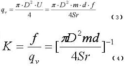 式中,m爲旋渦發(fā)生體兩側弓形(xing)面積與管道橫(heng)截面面積之比(bǐ);D爲表體通徑;d爲(wei)旋渦發生體迎(ying)面寬度;f爲旋渦(wō)的發生頻率;U1爲(wèi)旋渦發生體兩(liǎng)側平均流速;Sr爲(wei)斯特勞哈爾數(shu);U爲被測介質流(liu)的平均速度。