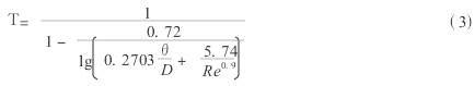 式中θ——管道内平(ping)均突出物高度(du),mm;Re——雷諾準數,Re=354×10-3qDV;q——體積(jī)流量,m3/s;V——工作狀态(tai)下💘介質的運動(dong)粘度,m2/s。