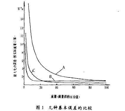 過(guò)去流量(liàng)儀表的(de)瞬時流(liú)量(或稱(cheng)流量率(lü))的基本(ben)誤差一(yī)般⛹🏻♀️以滿(man)量程的(de)百分比(bi)計算,在(zai)低流量(liàng)時如按(àn)實際流(liu)量百分(fen)比計算(suàn)誤差,其(qí)值就要(yao)大得多(duō)。如圖1所(suo)示,線A就(jiu)是過去(qu)通常♌采(cǎi)用l%F.S,轉化(huà)到按實(shi)際流量(liàng)計算的(de)最大允(yǔn)許誤差(cha)曲線時(shi),如指示(shi)流量在(zài)50%F.S時,則最(zui)大容許(xu)誤差爲(wei)2%R,在功%.FS時(shi)則高達(da)10%。線B是流(liu)量在10%~100%FS時(shi),誤差✍️爲(wei)1%R和流量(liàng)<10%F·S時誤差(chà)爲0.1%F·S時的(de)最大允(yǔn)許誤’差(cha)曲線。線(xiàn)C是目前(qián)采用得(de)較爲普(pu)追的誤(wù)差曲線(xiàn)🥵,流量在(zai)50%~100%F·S時誤差(chà)爲0.5%R,流量(liang)<50%時誤差(cha)爲0.25%F.5。從圖(tu)l中可以(yǐ)看到與(yu)過去儀(yi)表相比(bǐ),低流量(liang)時測量(liàng)精度顯(xian)著提高(gao)。這是由(you)于采用(yong)低頻矩(ju)形波磁(cí)零點穩(wen)定性大(dà)爲改善(shàn)所緻。