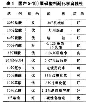 國(guo)産S一100聚礬塑(su)料耐化學腐(fu)蝕性見表
