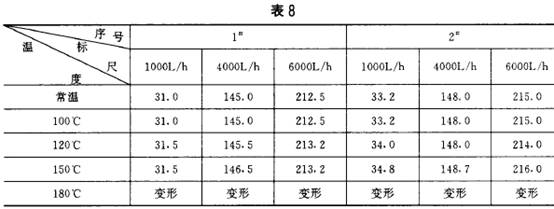将錐(zhui)管試樣用标(biao)準浮子先在(zai)常溫下選擇(zé)l000L/h、400oL/h、600oL/h三個流量🏃🏻♂️進(jin)行♍标定并記(jì)錄下浮子裝(zhuang)置,然後依次(ci)加熱至100,120,250,280℃保溫(wēn)2.5小時後重✍️複(fu)标定,再❗次記(jì)錄下浮子位(wèi)置,觀察浮子(zi)位置的變化(hua),檢測結果見(jian)表8。