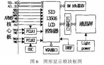 由(you)于AT91RM9200處理(lǐ)器未集(jí)成圖形(xíng)顯示,核(he)心闆上(shang)也未提(ti)供,所以(yǐ),要實🥵現(xian)🔴圖形顯(xian)示,必須(xū)構建圖(tu)形顯示(shi)模塊。電(diàn)路采♈用(yòng)LCD控制器(qì)🈲SID13506顯示芯(xīn)片[7]實現(xian)彩色液(ye)晶點陣(zhen)顯示和(hé)VGA标準接(jie)口。系統(tong)框圖如(ru)圖6所🍓示(shi)。