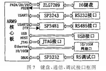 電(diàn)磁流量(liàng)計的鍵(jian)盤、通信(xin)和調試(shì)部分電(dian)路屬于(yú)嵌入式(shi)系統的(de)典型應(ying)用電路(lù),系統利(li)用ZLG7289A構建(jian)了8×2小型(xíng)鍵盤,由(yóu)I/O模拟串(chuan)行口建(jian)立系統(tǒng)連接,實(shí)現流量(liàng)計的系(xi)統設置(zhi)和按鍵(jian)數據💃輸(shū)入。