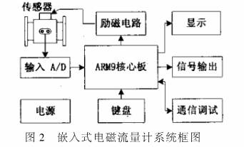 電磁流(liú)量計由(you)測量裝(zhuāng)置和電(diàn)路兩部(bu)分組成(cheng),電路☔部(bu)分主要(yào)由檢測(cè)輸入模(mo)塊、勵磁(ci)輸出模(mo)塊、流量(liang)輸出模(mó)塊、圖形(xing)顯示模(mo)塊、鍵盤(pan)模塊、通(tōng)信及調(diao)試接口(kou)、電源模(mo)塊、以及(jí)最重要(yao)的基于(yú)ARM9嵌入式(shì)系統[2]的(de)核心闆(pǎn)組成。圖(tú)2給出了(le)嵌🔞入式(shì)電磁流(liú)量計的(de)系統框(kuàng)圖。圖2嵌(qian)入式電(dian)磁流量(liang)計系✂️統(tong)框圖。