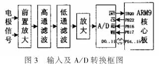 檢測輸(shū)入模塊(kuai)包括差(chà)分測量(liang)放大器(qi)、低通和(hé)高通❄️濾(lǜ)🥵波器⛱️、增(zēng)益放大(dà)器以及(jí)A/D轉換電(diàn)路,如圖(tú)3所示。圖(tú)3輸入及(jí)A/D轉換框(kuàng)圖。