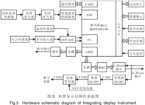 積算(suan)顯示儀(yi)硬件系(xì)統圖如(rú)圖3所示(shi),主體采(cai)用單片(piàn)機作爲(wei)🌐核心處(chu)理器,該(gai)型單片(pian)機是一(yī)款16位的(de)單片☔機(jī),供㊙️電電(dian)壓爲1.8V~3.6V,采(cǎi)用了精(jing)💃簡指令(lìng)集(RISC)結構(gòu),運算速(su)度快,片(piàn)上資源(yuán)豐富,便(biàn)于🧡功能(neng)擴展,在(zài)其系統(tǒng)中共有(you)1種工作(zuò)模式(AM)和(hé)5種低功(gōng)耗模式(shì)(LPM0-LPM4),工作模(mo)式下工(gōng)作電流(liú)隻有200μA,RAM數(shù)據保持(chí)模式工(gong)作電流(liú)隻有0.1μA,非(fei)常适用(yòng)于各種(zhǒng)需要電(dian)☔池供電(dian)的低功(gong)耗設計(ji)的工業(yè)計量儀(yí)表設備(bei)中。基于(yú)單片機(ji)卓越的(de)超低功(gong)耗特性(xing),以及實(shí)🈲際的低(di)功耗應(yīng)用需求(qiu),是将其(qi)作爲🌏主(zhu)控微處(chù)理器的(de)主要✔️目(mu)的。滿足(zú)了🈲多傳(chuan)感器信(xìn)号采集(ji)和數據(jù)處理功(gōng)能以及(jí)多👨❤️👨種信(xìn)号輸出(chū)及通信(xin)功能所(suǒ)需的功(gong)耗和硬(yìng)件資源(yuán)要求。