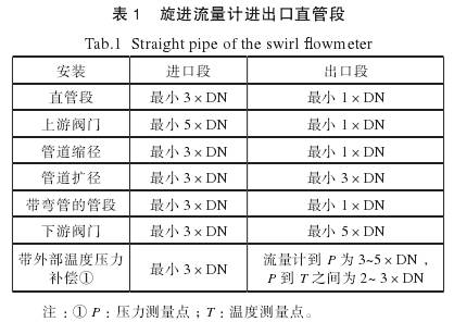 流量計(jì)安裝直(zhi)管段要(yào)求滿足(zu)與否,直(zhi)接影響(xiǎng)流量測(ce)量的穩(wen)定性和(he)精度。旋(xuán)進流量(liàng)計進出(chū)口直管(guǎn)段要求(qiú)🌈見表1。從(cong)表🐕1可知(zhī),其直管(guan)段要求(qiú)并不高(gāo),這一優(yōu)💚勢在舊(jiu)裝置擴(kuò)容改造(zao)的應用(yòng)中尤爲(wei)突出。