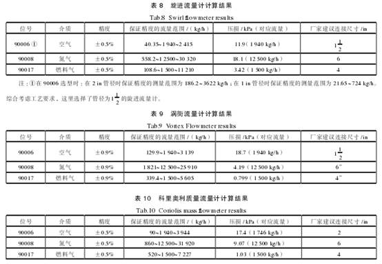 (2)測量(liang)介質爲(wèi)氣體(除(chu)氫氣外(wài))時,在此(cǐ)選擇旋(xuán)進流量(liang)計(精度(dù)爲🈲氣體(tǐ)±0.5%)、渦街流(liú)量計(精(jing)度爲氣(qì)體±0.9%)和科(kē)裏奧♻️利(lì)質量流(liu)量計(精(jīng)度爲氣(qi)體±0.5%)做對(dui)比分析(xi),以下主(zhu)要對比(bi)3種流量(liàng)計的測(cè)量範圍(wéi)(3種流量(liàng)計都爲(wèi)同一品(pǐn)牌産品(pǐn))。表7爲工(gōng)藝條件(jian),表8~表10爲(wei)3種流量(liàng)計的選(xuan)型後的(de)量程範(fàn)圍和壓(ya)力損失(shi),通過表(biao)11對比流(liú)量計是(shì)否滿足(zu)工藝條(tiáo)件。