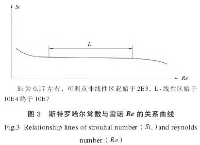 圖(tu)3表示出(chu)斯特羅(luó)哈爾常(chang)數與雷(léi)諾Re的關(guan)系。曲線(xian)的線性(xìng)區㊙️域對(dui)應的爲(wèi)旋進流(liú)量計的(de)測量範(fàn)圍。