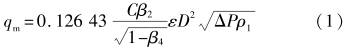 由圖1可(kě)知,V形錐流量(liang)計爲“邊壁收(shou)縮式”節流裝(zhuang)置,正壓取壓(yā)孔開在測量(liàng)管壁上,此處(chù)的流體還未(wei)通過節流件(jian),負壓取壓孔(kǒng)開在錐體尾(wei)部。由于測量(liang)原理同樣滿(mǎn)足伯努利方(fang)程和流體流(liú)動連續性方(fāng)程,所以V形錐(zhui)流量計與标(biāo)準節流裝置(zhì)的計算公式(shi)--樣。其計算公(gong)式如下3]: