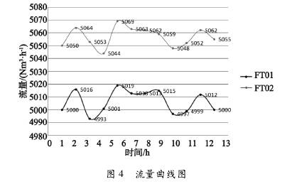如圖(tú)4所示爲(wei)孔闆運(yun)行曲線(xiàn),12h内平均(jun1)偏差爲(wei)50.25Nm3,由此可(kě)以推算(suàn)出一年(nián)的偏差(chà)約爲440190Nm3。