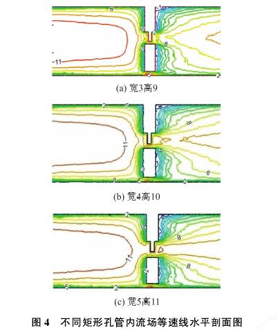 圖4所示(shi)爲幾種矩(ju)形孔的管(guǎn)内流場等(deng)速線水平(ping)剖面圖