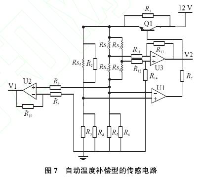 一種新(xīn)型的流量(liang)傳感電路(lù),如圖7所示(shi)。傳感元件(jiàn)由熱電阻(zǔ)🌐R, R,R、R,、R.,構成,與精(jing)密電阻R2、R3、R.、Rs、R。構(gòu)成惠斯通(tong)電橋,該電(diàn)路能實現(xiàn)溫度補償(cháng),并能檢測(cè)管道中氣(qì)體的方向(xiang)。電路中精(jing)密電阻R2與(yǔ)熱電阻R并(bìng)聯不僅防(fang)👌止通過R..的(de)電流過大(da),而且可提(ti)高溫度補(bu)償的準确(que)度🌏。爲了使(shǐ)傳感元件(jian)輸出‼️與氣(qì)體溫度無(wú)關的穩定(ding)電壓,理想(xiang)情況下在(zài)任何🏃環境(jing)溫度下應(ying)滿足式(9)。