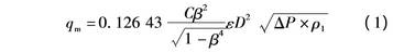 式中: qm爲(wei)流體的質量流(liú)量,kg/h; C爲流出系數(shù)經過流量或抽(chōu)樣标定🌐、幾何尺(chǐ)寸檢查即可得(de)知; ε爲可膨脹性(xing)系數,對⭐于液體(ti)ε=1;β=d,/D爲直徑比其中(zhong)d,爲工作條件下(xia)節流件最小截(jié)面處的等效流(liu)♍通直徑,mm;D爲工作(zuo)條件下儀表測(cè)量管的内徑,mm;ΔP爲(wèi)從🤩節流件上、下(xià)遊取壓口處測(cè)取的差壓,kPa;ρ爲儀(yí)🎯表安裝處.上遊(you)段工作條件下(xià)的流體❄️密度,kg/m3