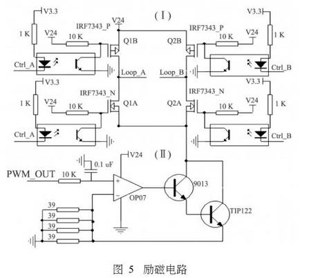 其中,電(dian)路(I)是由4隻光(guang)耦和2片場效(xiao)應管RF7343(每片中(zhong)有一🐪隻N溝道(dào)和一隻P溝道(dao)型的場效應(yīng)管)組成的橋(qiao)式開關電路(lù)。通過兩✉️路控(kong)制信号CtrlA和Ctrl_B的(de)高低電平來(lai)控制㊙️場效應(yīng)💋管的通斷,從(cong)而實現了🔅勵(lì)磁線圈中電(dian)流方向的切(qiē)換。電路(I)是由(you)一片運算放(fàng)大器OP07.-隻NPN型三(sān)極管🈲S9013、一隻NPN型(xíng)三極💃🏻管TIP122和4隻(zhī)399采樣✍️電阻組(zu)成的恒流源(yuán)。由MCU的🤩定時器(qi)脈沖寬度調(diào)制(PWM)輸出經過(guò)RC電路濾波後(hòu)來控😘制流過(guò)勵磁線圈的(de)電流I從而産(chǎn)生三值正弦(xián)矩形波🈲。