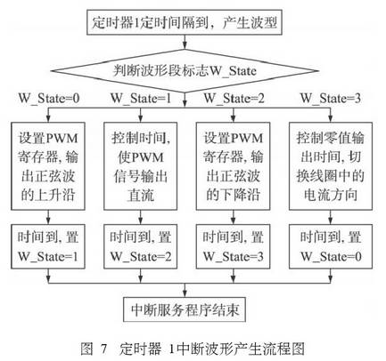 定時器1用(yòng)于産生三值(zhi)正弦矩形波(bō),流程圖如圖(tú)7所示。程序中(zhōng)設置兩個有(you)32個元素的數(shu)組分别存放(fang)用于生成正(zhèng)🔴弦波上升♊沿(yan)和下降沿的(de)占空比數據(ju),依次使用這(zhe)些值♌來設置(zhi)定時器的TM1__OCAR寄(ji)存器,控制PWM輸(shū)出的占空比(bi)🏃🏻,進而控制RC濾(lǜ)波電路📞輸出(chu)的電壓大小(xiao),最🐆終得到設(she)計的波形。