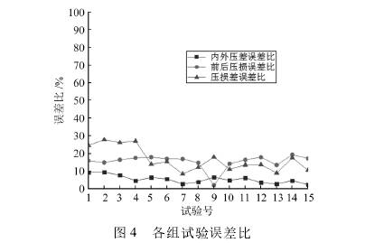 對于雙(shuāng)向内外管壓(ya)差流量計而(er)言,内外壓差(cha)信号大的條(tiao)🔞件下,壓損越(yue)小越好,故選(xuǎn)取内外壓差(chà)信号與壓✔️損(sun)的🚶差值,即壓(ya)損差,作爲雙(shuang)向内外管壓(ya)差流量計的(de)評價指标。按(àn)照前文設置(zhi)的結構參數(shu)建立15組三維(wéi)模型,分别利(lì)用FLUENT與COMSOL進行仿(páng)真,根據仿真(zhen)結果,記錄内(nei)外壓🆚差信号(hao),将COMSOL和🌈FLUENT仿真數(shù)據的差的絕(jue)對值與FLUENT數據(jù)的比值定義(yi)爲誤差比,内(nèi)外壓差信号(hào)數據對比見(jian)表🤩2,用同樣的(de)方法記錄兩(liǎng)種軟件仿真(zhen)結果的💔前後(hou)壓損和壓損(sun)🛀差,并計算出(chu)誤差比❓,數據(ju)對比見表3、表(biao)4。繪制的誤差(chà)比折線圖如(ru)圖4所示。
