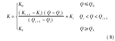 現有(you)速度式流量(liàng)計的儀表系(xi)數非線性修(xiū)正常用🌏的方(fāng)法有線性插(cha)值法、三次樣(yàng)條插值法和(he)最小二☂️乘法(fa):1-12]。考慮🍉到新💰型(xing)渦輪流👈量計(jì)流量Q與儀表(biao)系數K的💜關系(xi)曲🐕線爲單調(diào)遞增關系,較(jiao)适合采用線(xian)性插值方法(fǎ)進行⛱️修正。以(yi)流🤞量計檢定(ding)💋點作爲插🏃🏻值(zhí)函數的節點(diǎn),即各檢定流(liu)量點Qi(i=0,1,.5)對🐕應的(de)儀表系數爲(wèi)Ki(i=0,1,.5),采取分段插(cha)值對其他流(liú)量點的儀表(biao)系數進行修(xiu)正,具體的計(ji)算表式爲: